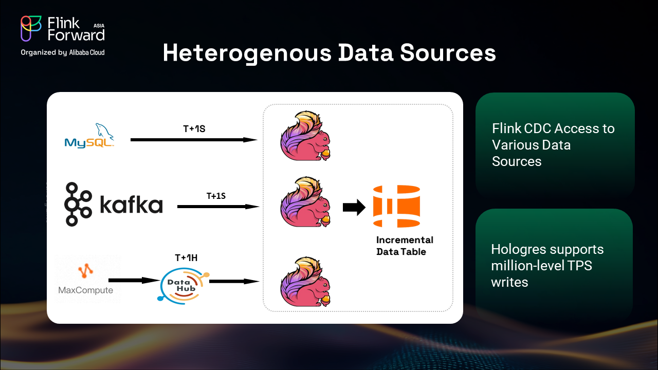 Support for external data sources has been greatly enhanced through Hologres' capability to handle diverse upstream systems. Whether data originates from Alibaba's internal systems or external seller platforms, our unified platform can efficiently process and integrate information from multiple sources.