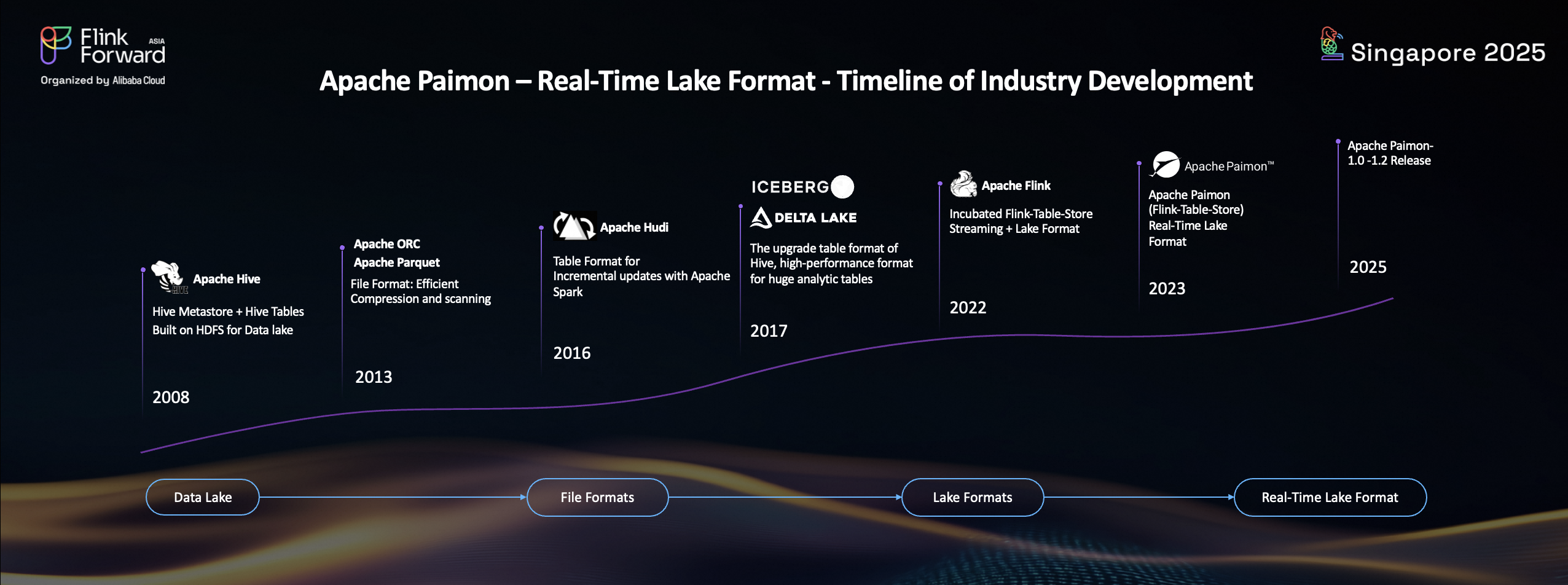 Recognizing the growing importance of streaming data processing, the Apache Flink community initiated Flink Table Store, which evolved into Apache Paimon. Unlike previous table formats designed primarily for batch processing, Paimon represents a fundamental shift toward real-time lake formats optimized for streaming applications.