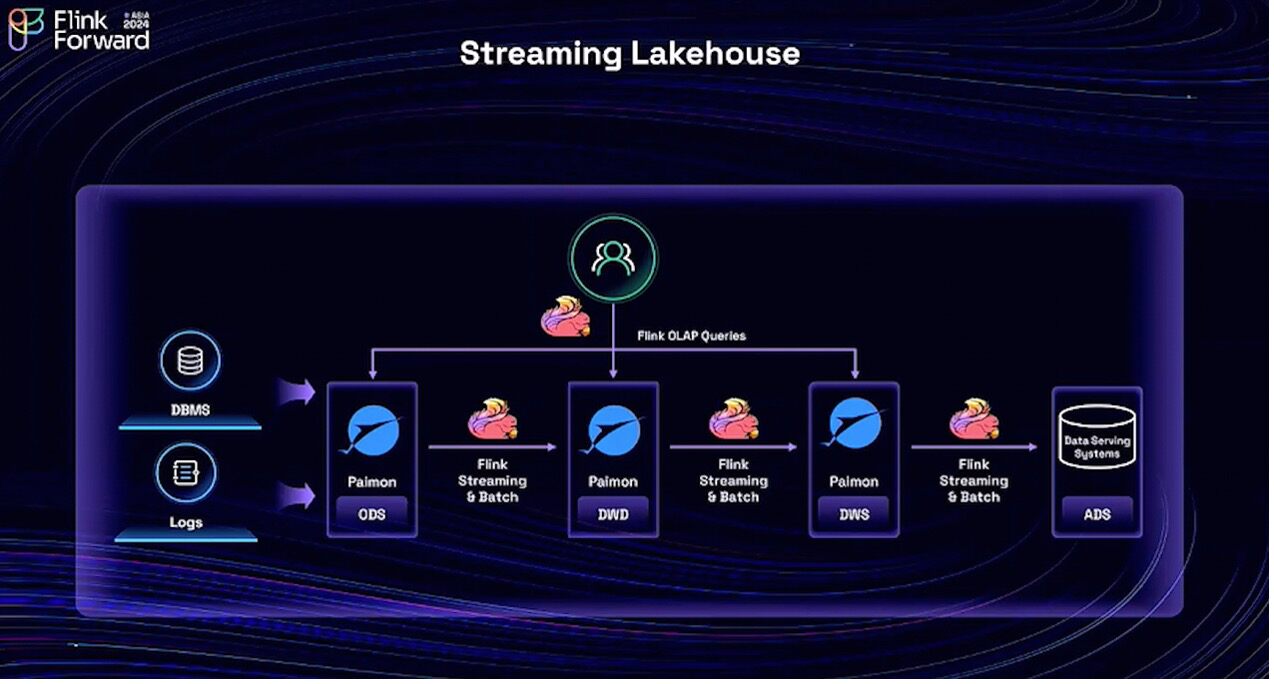 Thank you, Lincoln, and thank you, Yuan, for the sharing. Next, let's talk about the streaming lakehouse. The streaming lakehouse is a new architecture, as previously introduced in Lincoln and Feng's presentation. It's a new data analytics architecture that we built with Flink and Paimon. This architecture is completely stream-batch unified, and all the data in the streaming lakehouse is real-time and queryable. However, in order for this new architecture to land well in production, it requires deep integration between the two projects, Flink and Paimon. So we have been doing a lot in that direction.