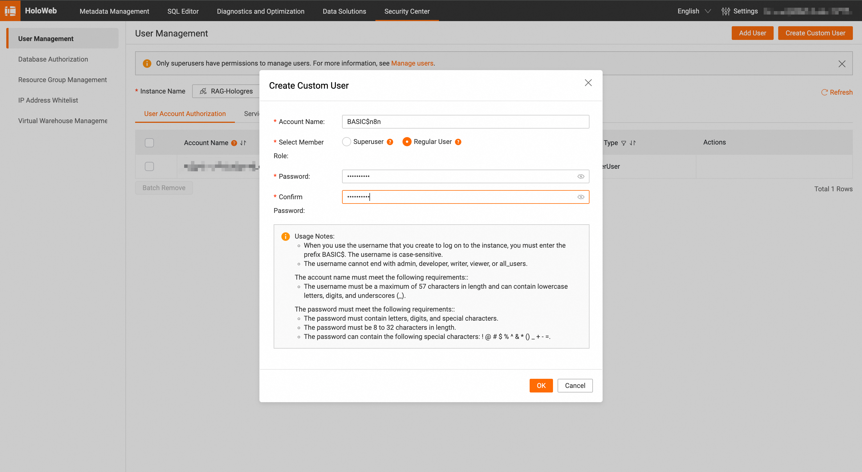 n8n (or your chosen database name)BASIC$n8n (or your created user)