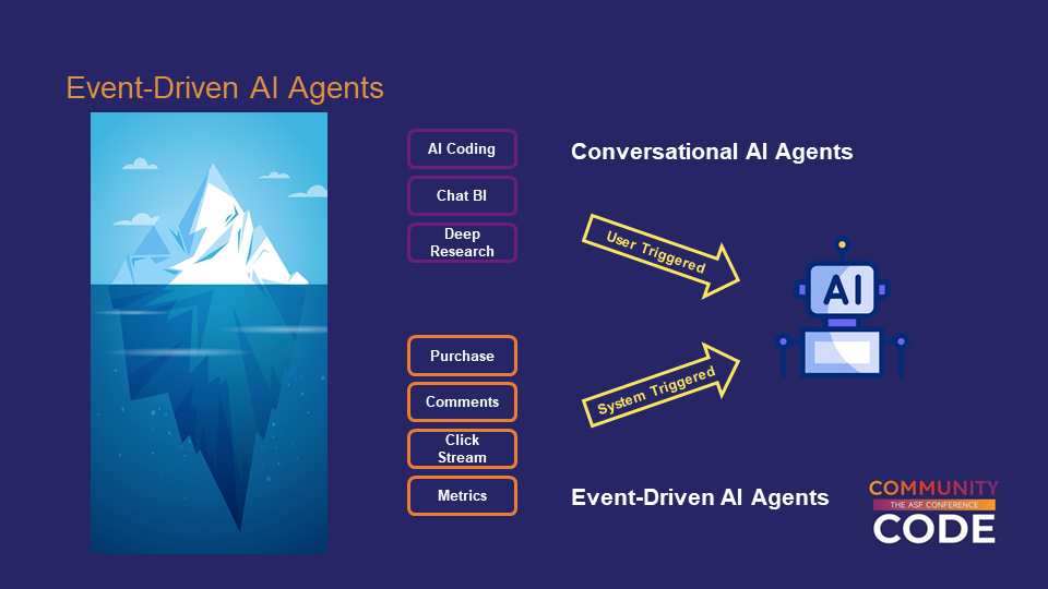 In contrast, event-driven agents are triggered automatically by system events or data updates. As AI matures, we expect more automation — similar to how OLAP analysis evolved from manual SQL queries to fully automated, high-throughput operations. Future AI will increasingly rely on system-generated triggers rather than human input.