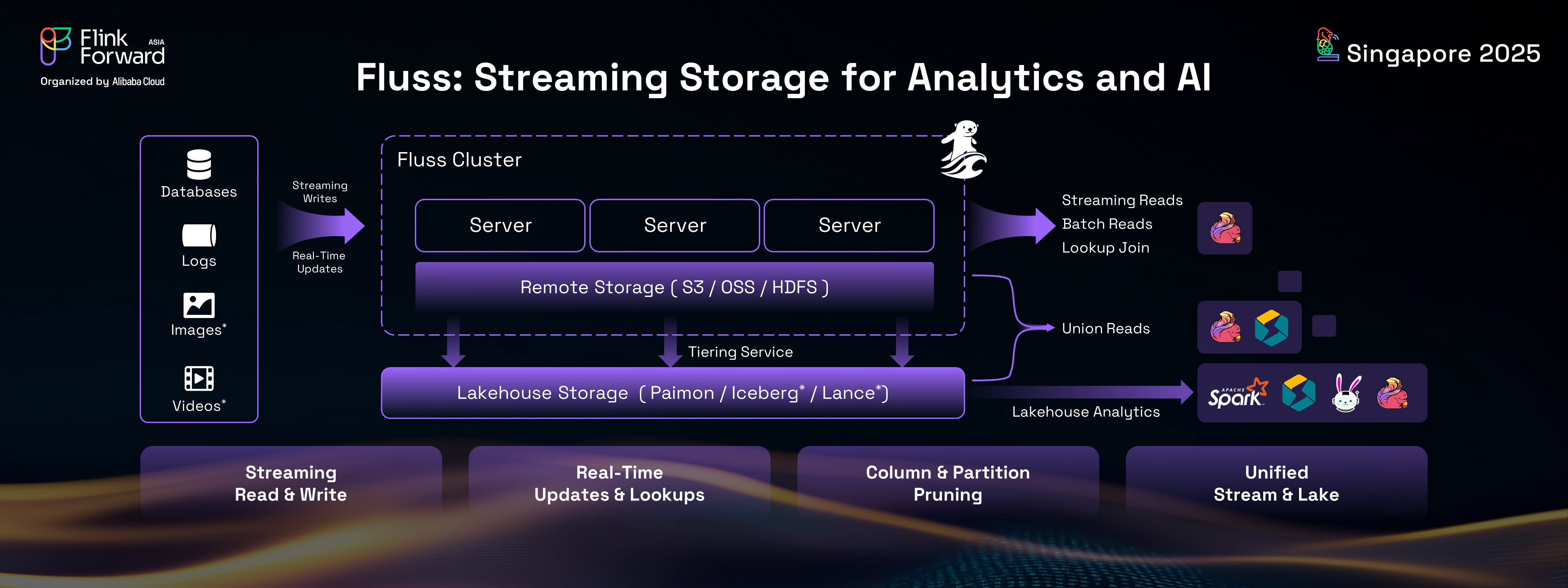 Welcome to an in-depth exploration of Apache Fluss (Incubating), a groundbreaking streaming storage solution designed to revolutionize real-time data analytics and AI. This blog post, inspired byJark Wu's keynote at Flink Forward Asia Singapore 2025, introduces Fluss as the next-generation streaming storage, meticulously optimized for modern analytical and AI use cases. We will delve into how Fluss effectively bridges the gap between traditional streaming systems and cutting-edge lakehouse architectures, significantly enhancing storage capabilities for machine learning feature engineering and multi-modal AI data ingestion. Join us as we uncover the motivations behind Fluss, its key architectural advantages, and compelling real-world use cases.
