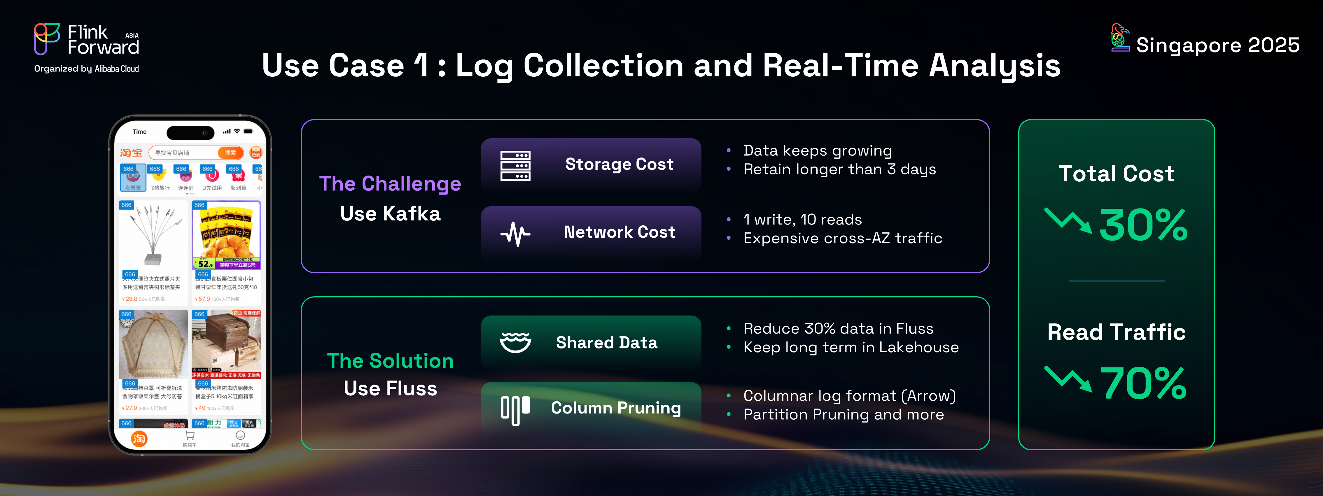 At Taobao, China's largest online shopping platform, a vast array of logs are collected from applications and websites. These logs encompass critical data such as clickstreams, user behavior, and order streams, forming the foundation for downstream analytics and AI/machine learning initiatives. However, the Taobao team faced significant challenges when using Kafka for this purpose: