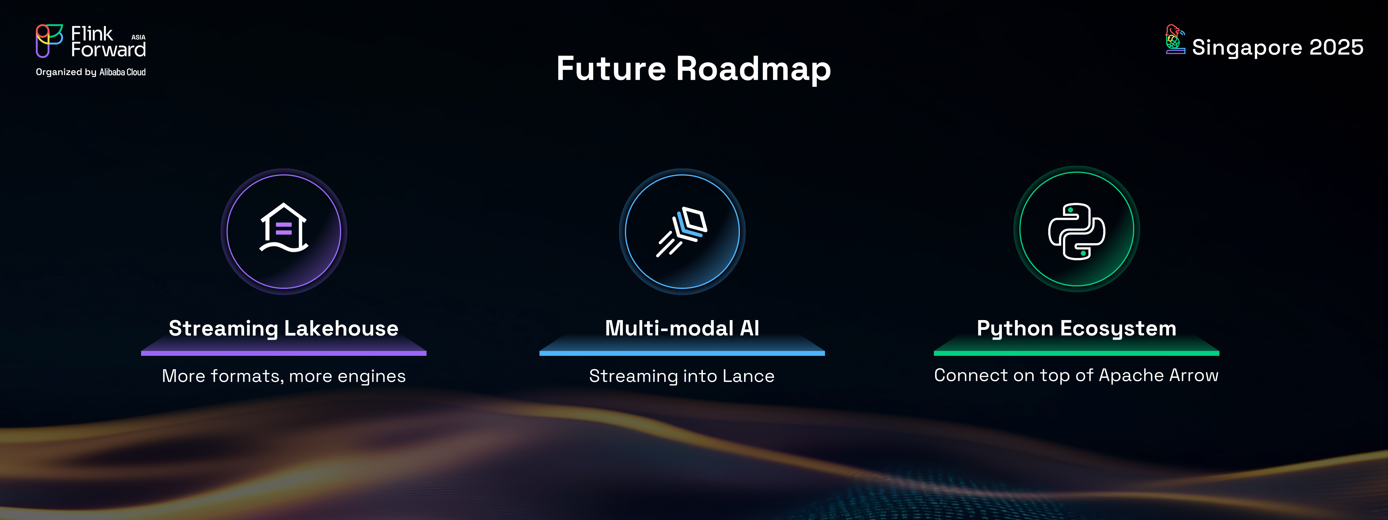 The future roadmap for Fluss is ambitious and exciting, focusing on expanding its capabilities to meet the evolving demands of the AI era. The key areas of development include: