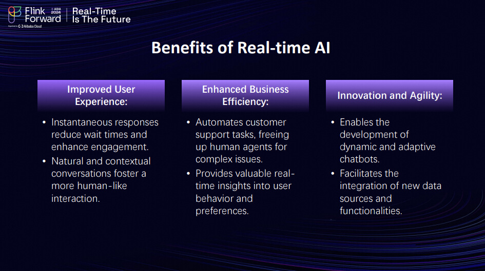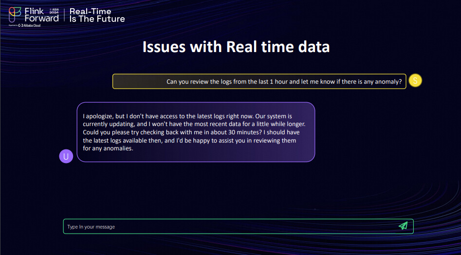 Yes, real-time data is crucial. That's the main objective of this entire event, isn't it? If we only send batches of data and store them in a vector database, it's outdated because it isn't real-time. This is why we want to utilize Apache Flink for the real-time data benefits. We've outlined several ways it will enhance the user experience by keeping them updated with the most recent developments and allowing the data to be agile in understanding the current state. We now understand the RAG architecture, right? The next important aspect to discuss is Apache Flink. Let's hear from Ashish about it.