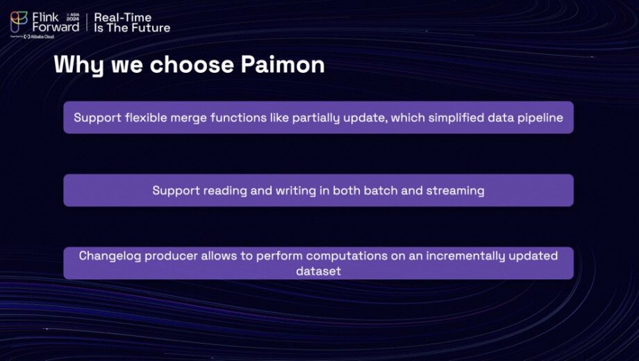 Apache Paimon presented several compelling advantages. Firstly, it supports flexible merge functions, including partial updates, which can effectively replace traditional joins and simplify the data pipeline. Secondly, it accommodates both batch and streaming read/write operations, offering versatility that the team needed. Lastly, Paimon includes a changelog producer, enabling computations on incrementally updated datasets. This capability significantly reduced overall computation costs, marking a promising step forward in optimizing their data management strategies.