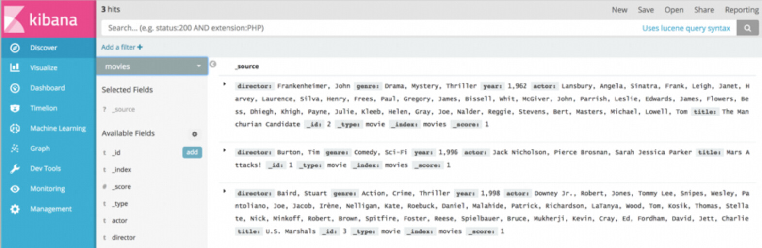 4)Prepare the index whose data you want to migrate. The movies index is used in this example.