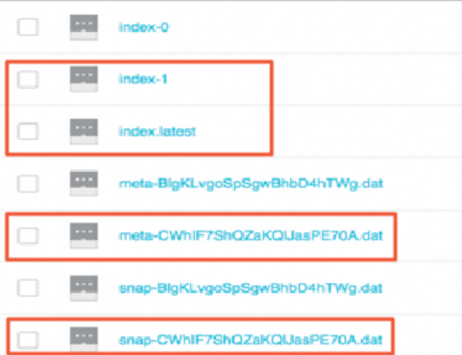 In the S3 console, view snapshot objects.