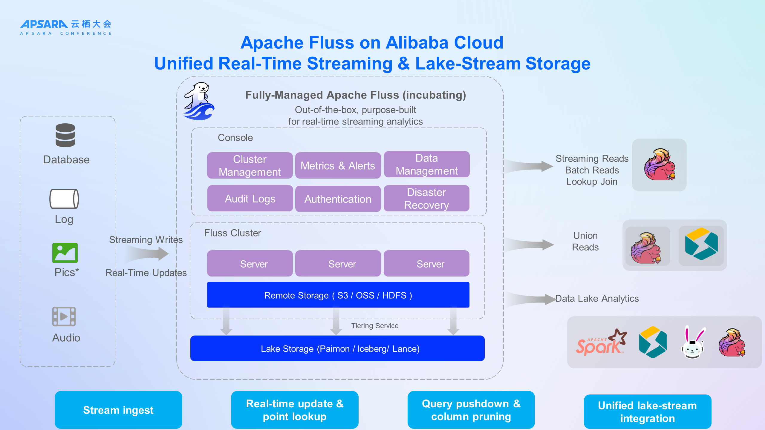 Streaming Storage for Apache Fluss (incubating) — Alibaba Cloud’s next-gen stream storage based on Apache Fluss (incubating) — is purpose-built for real-time and lake-stream integration.
