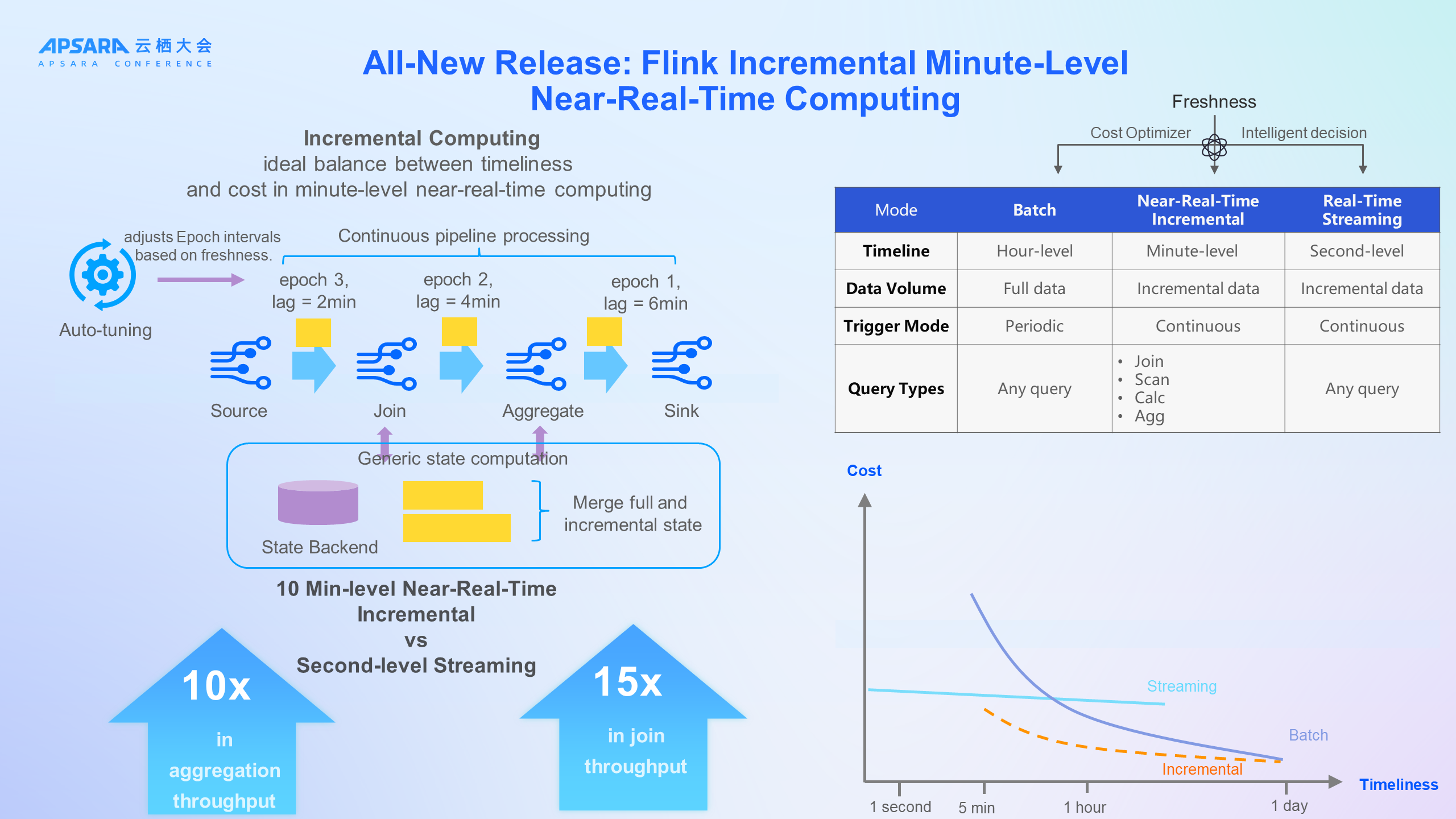 Originally stream-focused, Flink evolved toward batch capabilities, driving the unified "stream-batch integration" vision. However, users in granular scenarios seek optimal balance between timeliness and cost.