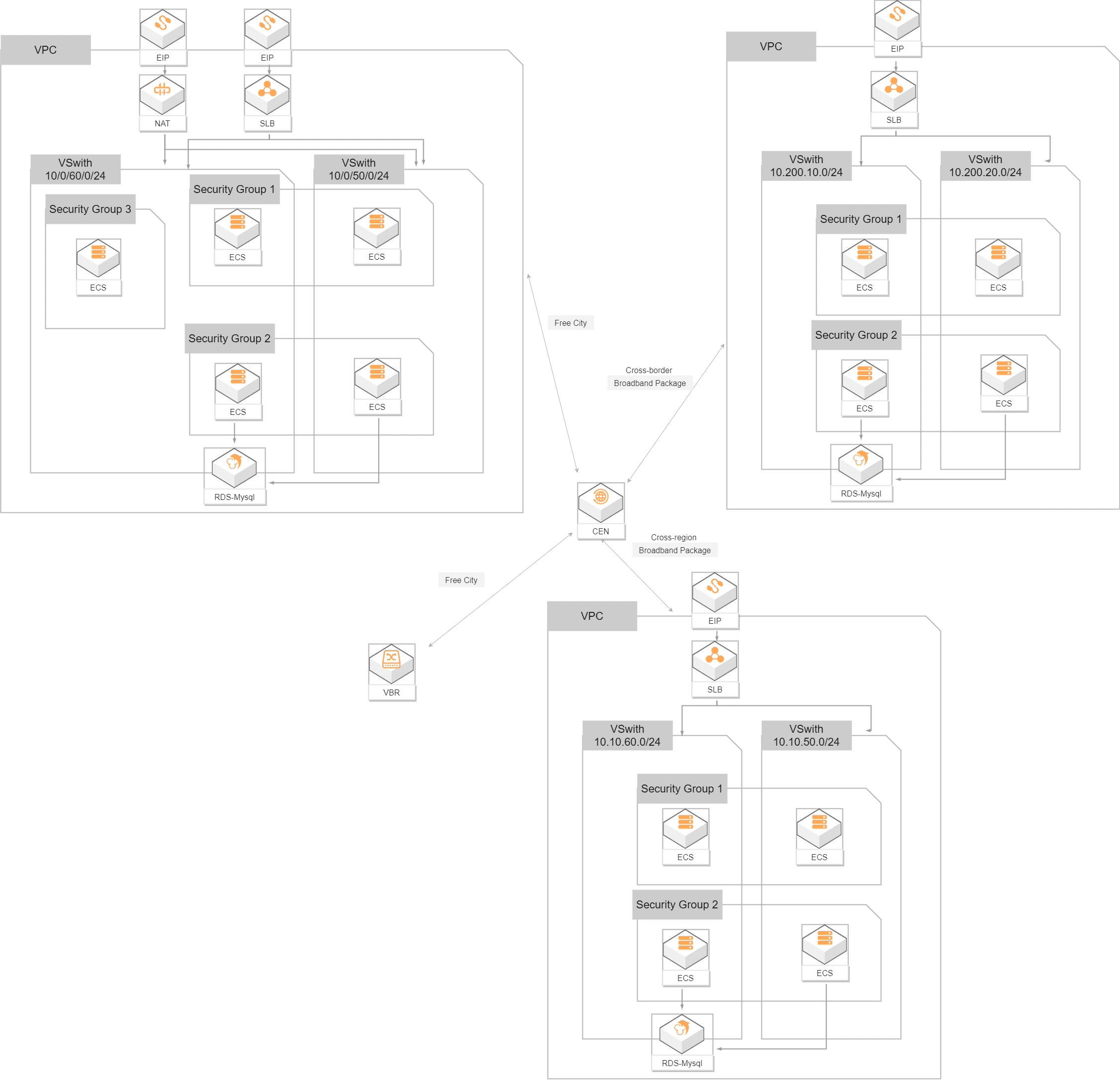 In the online education industry, most teachers are not located in the same region or country as the students. For example, in scenario-based online English education programs, the teachers are based in North America, while the students are from various regions in China. This template can be used together with the template for building a resource environment in a single region to complete network planning for global deployment.