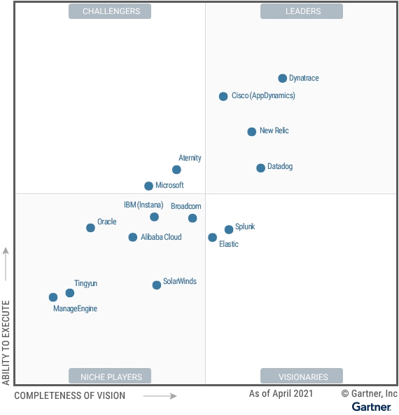 [1] Magic Quadrant for Application Performance Monitoring, by Padraig Byrne, Josh Chessman, Federico De Silva, 9 April 2021.