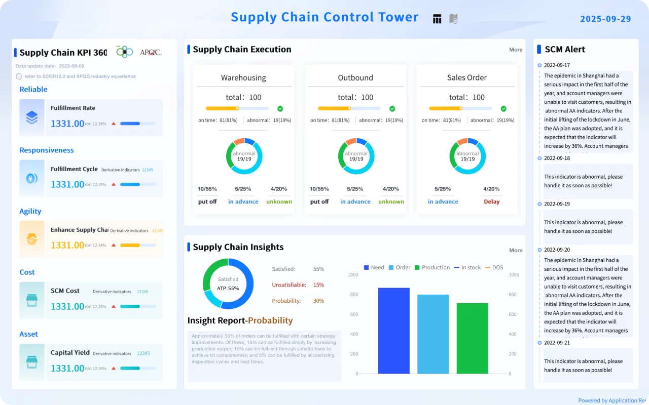 - ● Real-time KPI monitoring (OTD/OTIF, inventory turns, capacity)