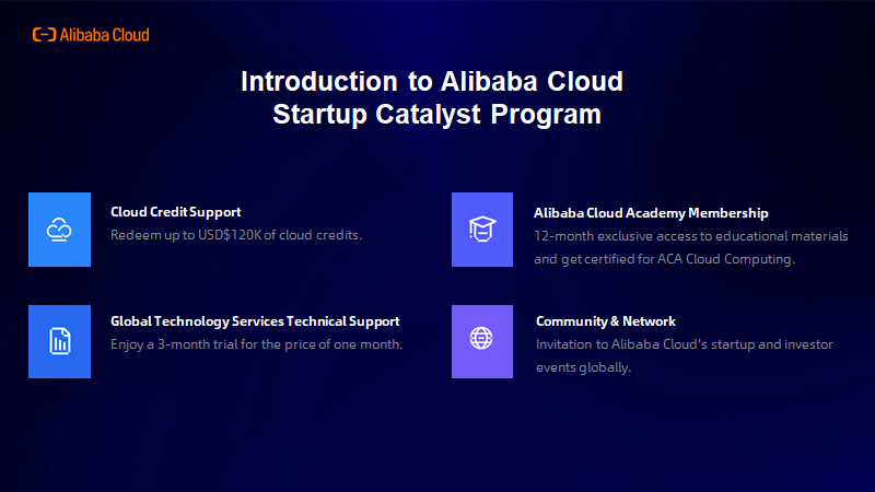 ● Invitations to strategic ecosystem events, including global startup showcases and investor engagements hosted by Alibaba Cloud