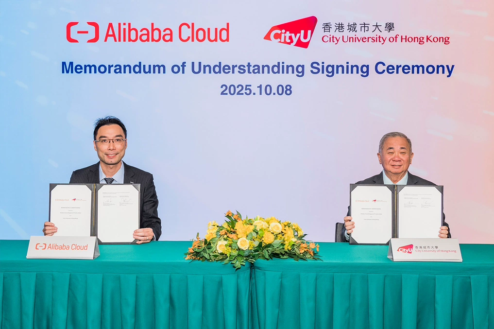 City University of Hong Kong (CityUHK) and Alibaba Cloud, the digital technology and intelligence backbone of Alibaba Group, signed a Memorandum of Understanding (MoU) on 8 October to jointly promote the development of artificial intelligence (AI), cloud technologies and innovative education. This collaboration aims to nurture digital talent with a global perspective and foster deeper integration between academia and industry.