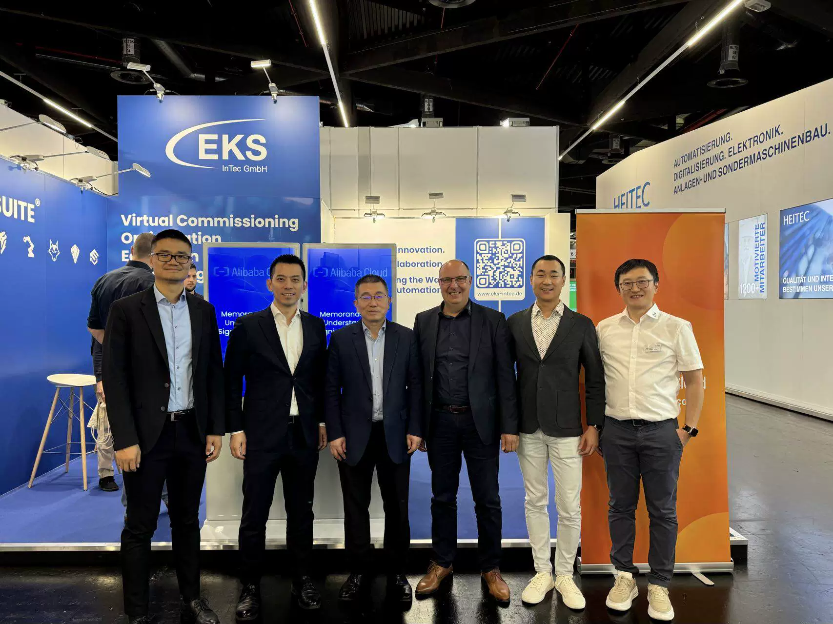 The signing ceremony were attended by representatives from EKS InTec GmbH and Alibaba Cloud. From Left to right: Leiming Zeng, Senior Solution Architect, Alibaba Cloud; Dr. Ye Huang, General Manager of Central Europe Region, Alibaba Cloud; Edwin Zhang, Chairman of Shanghai EASUN Technology Co., Ltd; Holger Hämmerle, General Manager, EKS InTec GmbH; Kang Ju, Business Development Manager, Alibaba Cloud; Yuming Zhu, Key Account Manager China, EKS InTec GmbH