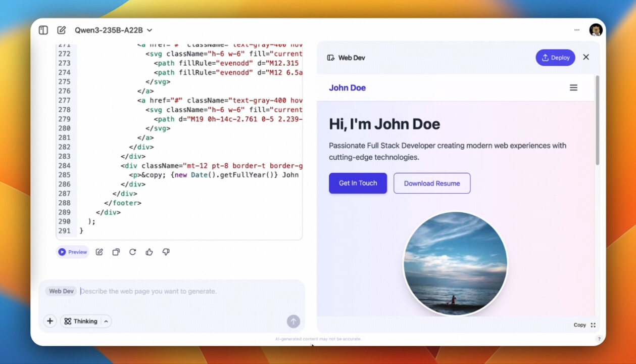 You can leverage Qwen APIs to build generative AI applications for a broad range of scenarios such as writing, image generation, audio analysis, etc. to improve work efficiency in your organization and transform customer experience.