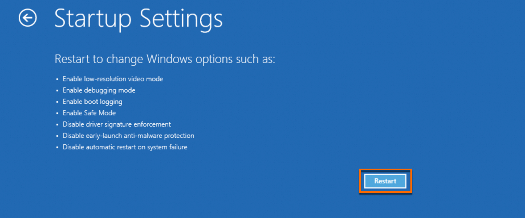 On the Startup Settings interface, click Restart.
