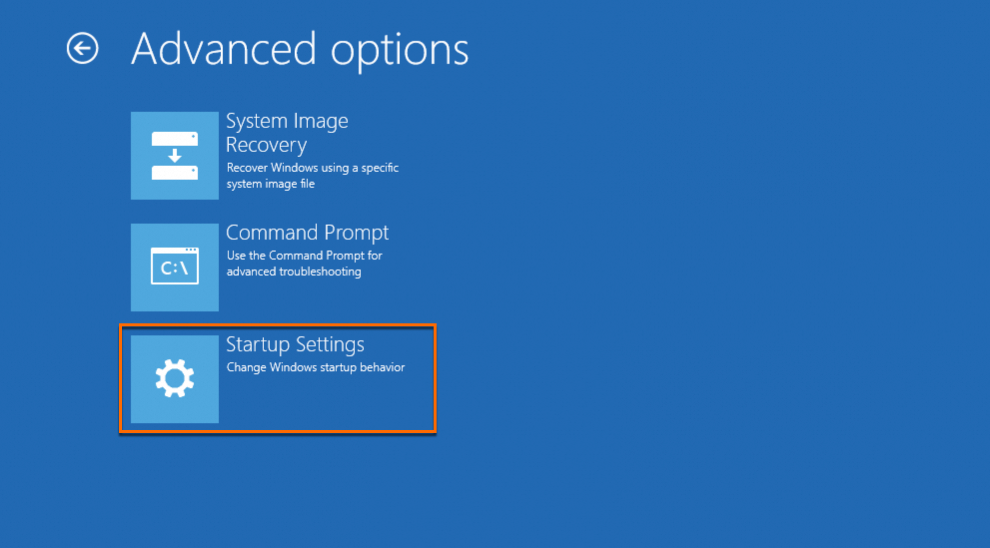 On the Advanced Options interface, select Startup Settings.