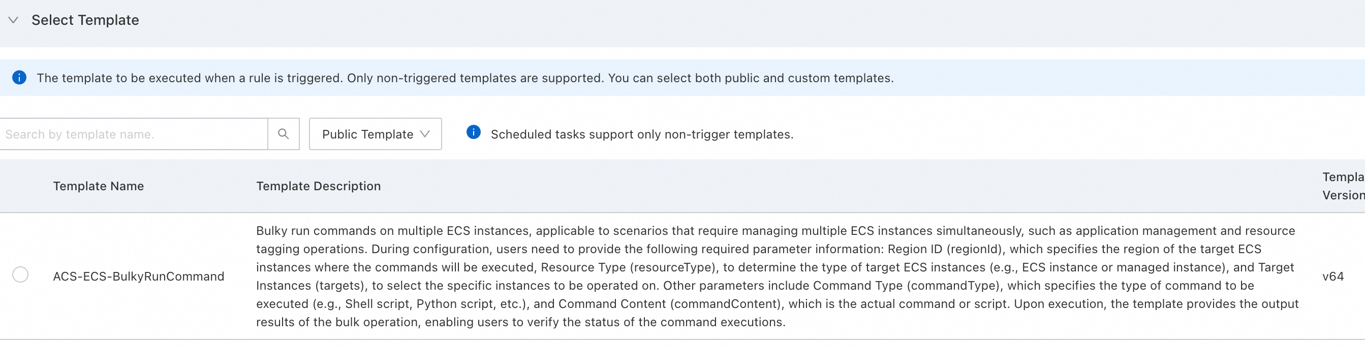 CloudOps Orchestration Service (OOS) lets you create O&M tasks that are triggered by threshold alerts for cloud service metrics. When a metric for a monitored cloud resource reaches a specified threshold, OOS executes a specified template to perform alert-based O&M. These tasks run continuously and monitor for alerts until you cancel them. For example, you can create an O&M task to clear a log directory when disk utilization exceeds 80%.