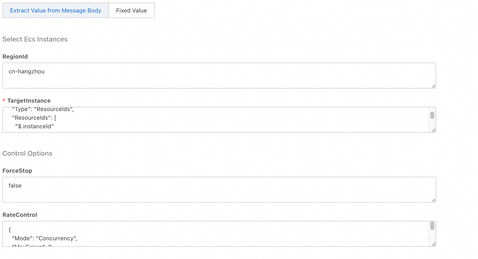 Static parameters (static configuration): These parameters are manually specified when you create the task and do not change during execution. If a task uses these parameters, it always operates on predefined resources and cannot identify the specific instance that triggered the alert.