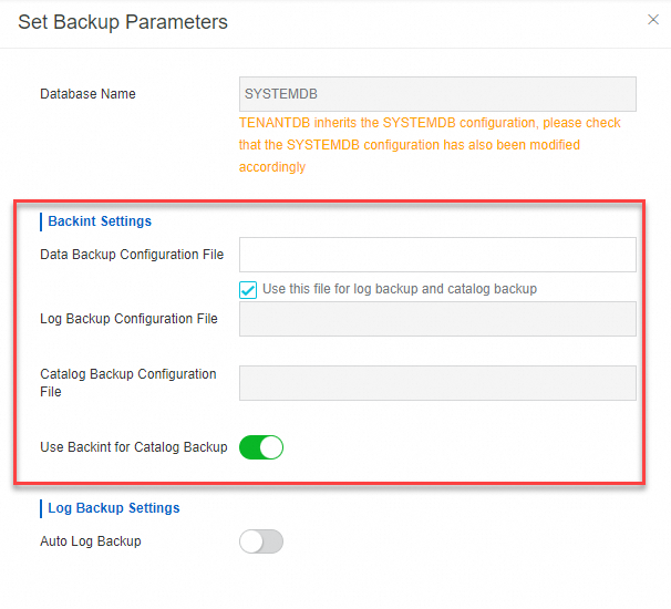 Di panel Set Backup Parameters, konfigurasikan parameter di bagian Backint Settings. Tabel berikut menjelaskan parameter-parameter tersebut.