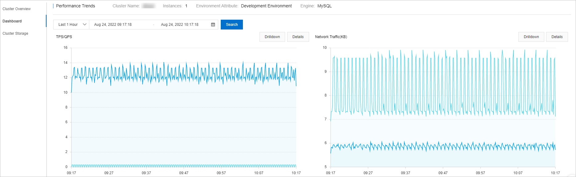 Gunakan fitur manajemen kluster dari Database Autonomy Service (DAS) untuk mengelompokkan instance database ke dalam kluster berdasarkan mesin database seperti MySQL. Anda dapat melihat tren kinerja, log query lambat, dan penggunaan penyimpanan global di tingkat kluster.