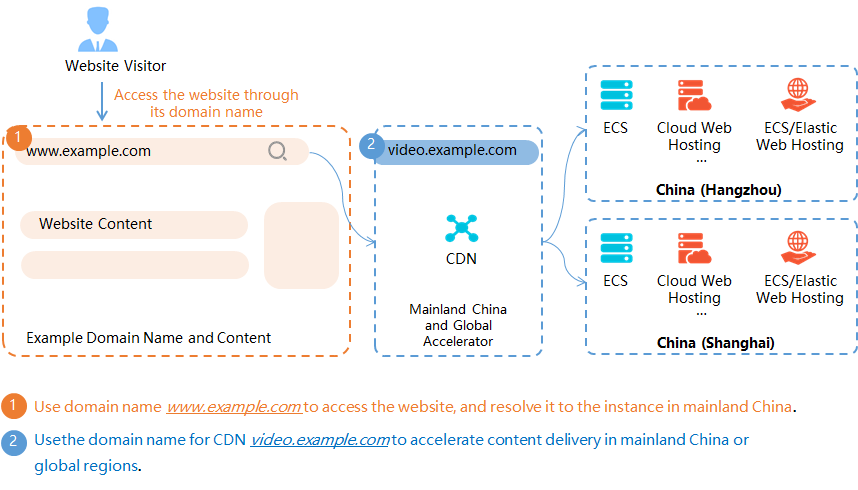 Nama domain ini digunakan oleh pengguna untuk mengakses website. Nama domain tersebut di-resolve ke instans yang berlokasi di Tiongkok daratan.