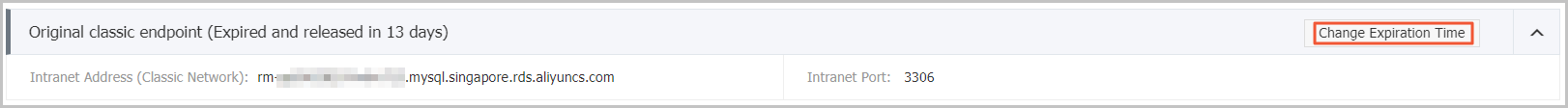 Tipe jaringan diubah ke VPC tetapi titik akhir jaringan klasik belum dihapus. Dalam hal ini, buka halaman Instances, klik ID instance RDS yang bersangkutan, lalu pilih Database Connection untuk menghapus titik akhir jaringan klasik.