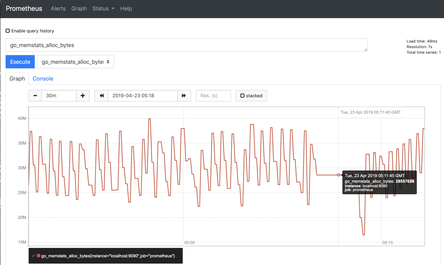 $./prometheus --config.file=prometheus.ymlSetelah Prometheus dimulai, Anda dapat menggunakan browser untuk mengakses layanan Prometheus. Nomor port default layanan ini adalah 9090.