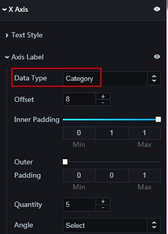 - 次の図に示すように、x 軸に沿ったデータの型を設定します。