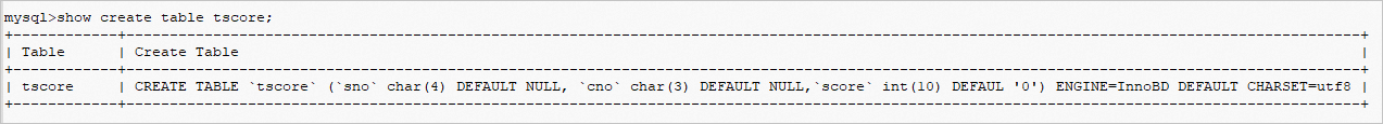 2. 次のSQL文を実行して、tscoreテーブルの構造が正常であることを確認します。