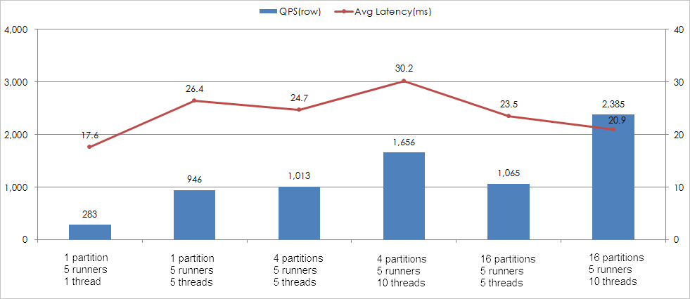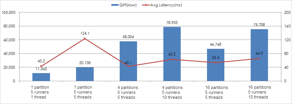 同じパーティション内で、負荷が増加したときにランダム読み取り操作のレイテンシが長くなる場合、パーティションが配置されているサーバーにリクエストのキューが発生します。負荷が増加しても、QPSは線形的に増加しない可能性があります。