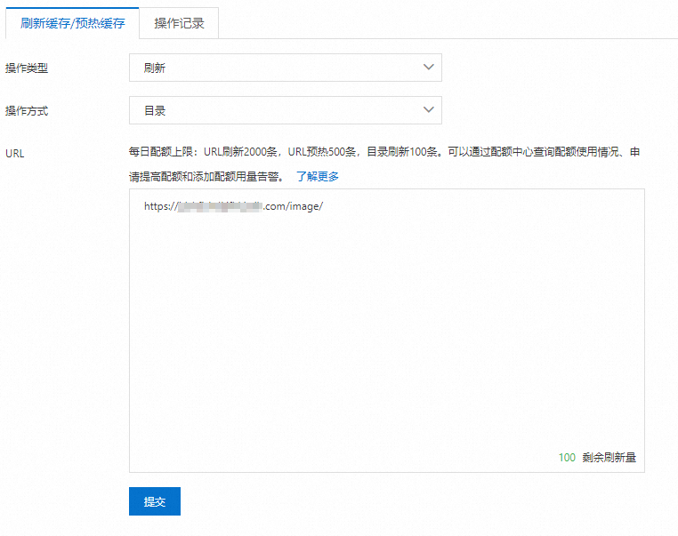 目錄重新整理:強制將CDN CACHE節點上某個目錄的檔案均設定為已到期,以達到重新回源更新的目的,適用於內容較多的情境,一般會在30分鐘內生效, 一天最多提交100個重新整理請求。