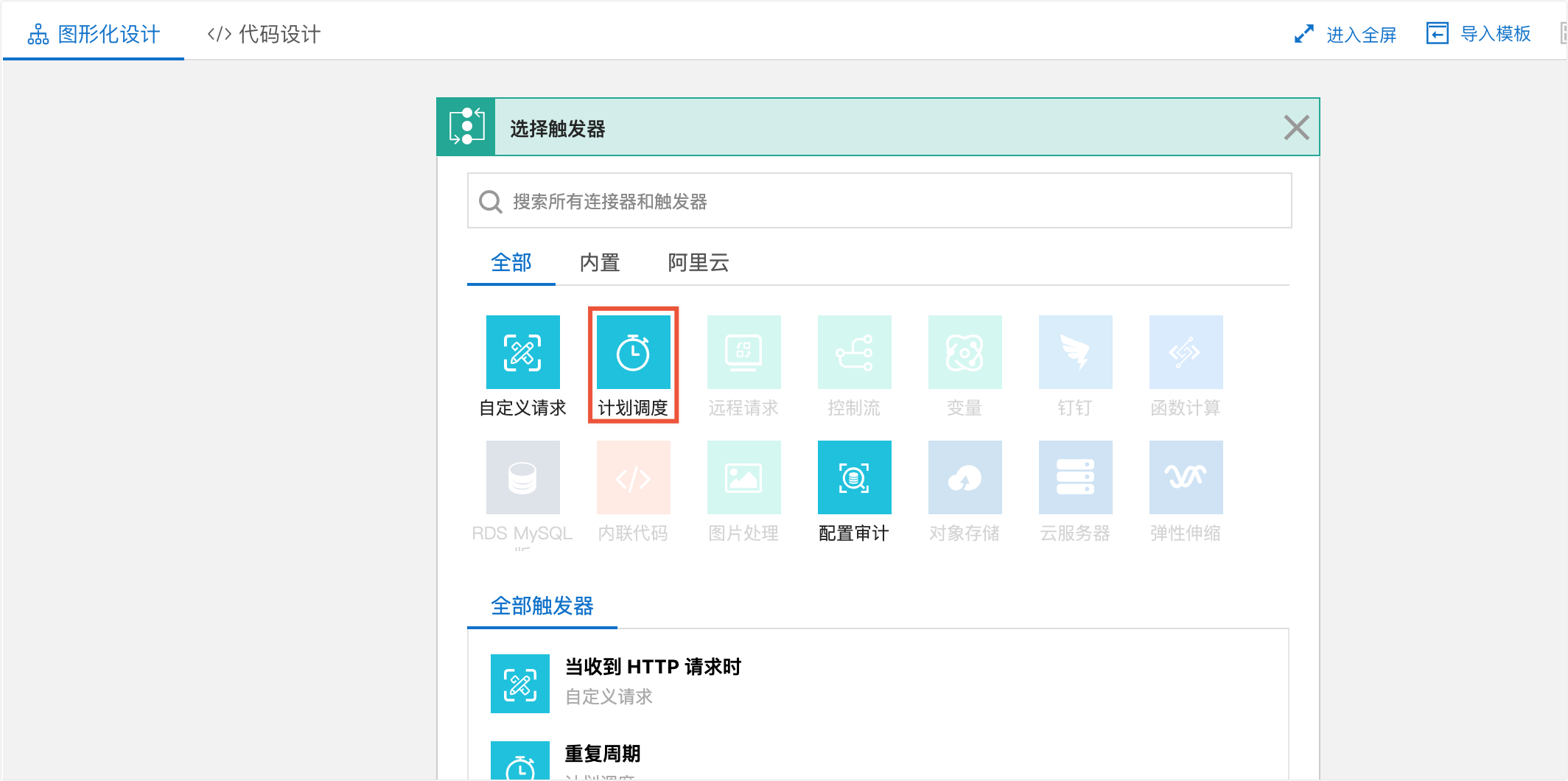 1. 在圖形化設計頁面,單擊計劃調度。