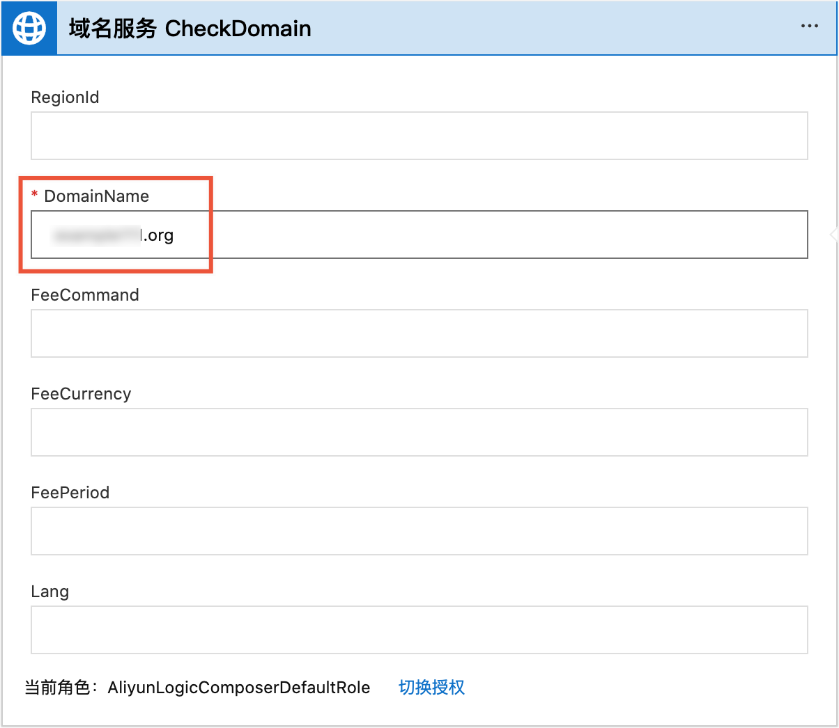 4. 授權完成後,在DomainName這個參數中填入需要檢查的網域名稱。