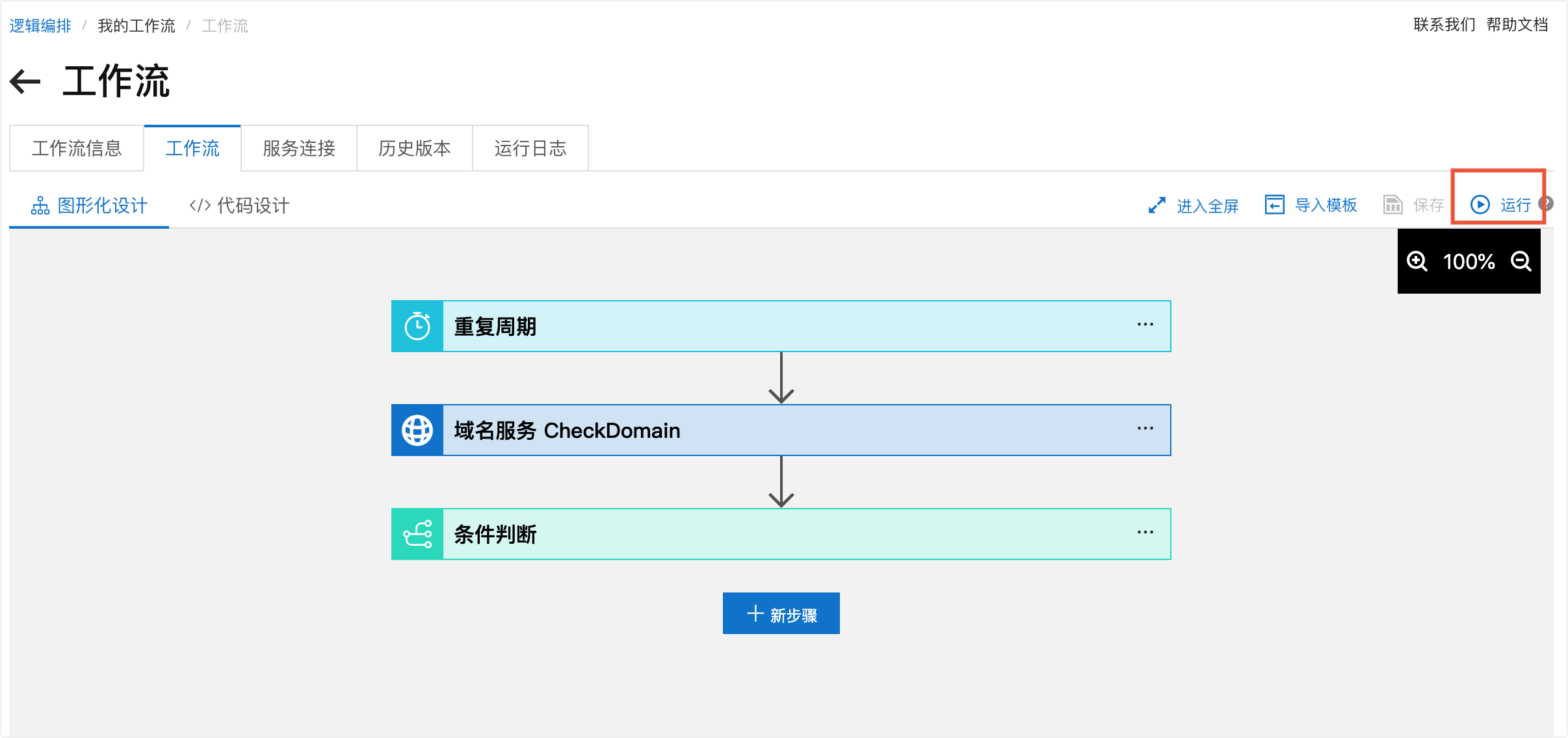 1. 在編輯器工具列中單擊運行按鈕,開始運行工作流程。