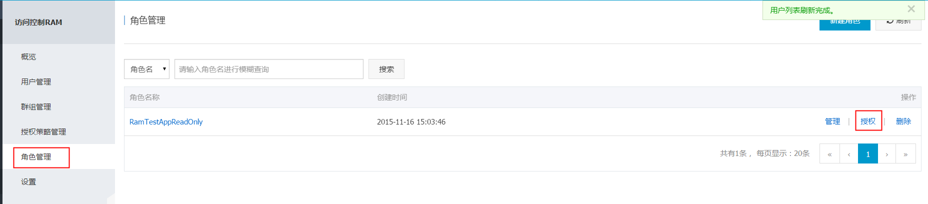 - 建立完成後,即可在角色管理裡面給RamTestAppReadOnly添加上ram-test-app的唯讀授權。