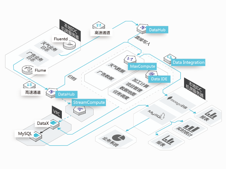 DataWorks提供数据汇聚、数据处理、数据治理、数据服务全流程解决方案。涉及到产品包括:数据集成、数据开发、数据质量、数据保护伞、数据服务等。