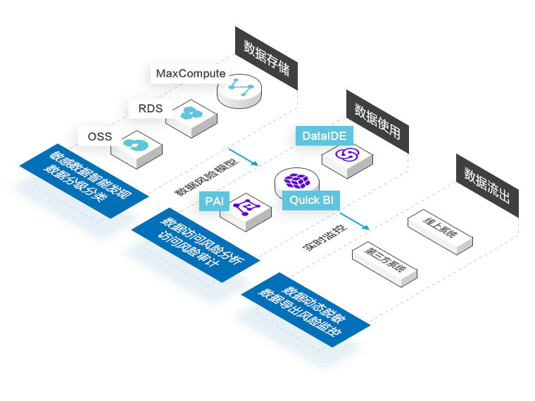 大数据安全管理,提供数据资产识别、敏感数据发现、数据分类分级、脱敏、访问监控、风险发现预警与审计能力